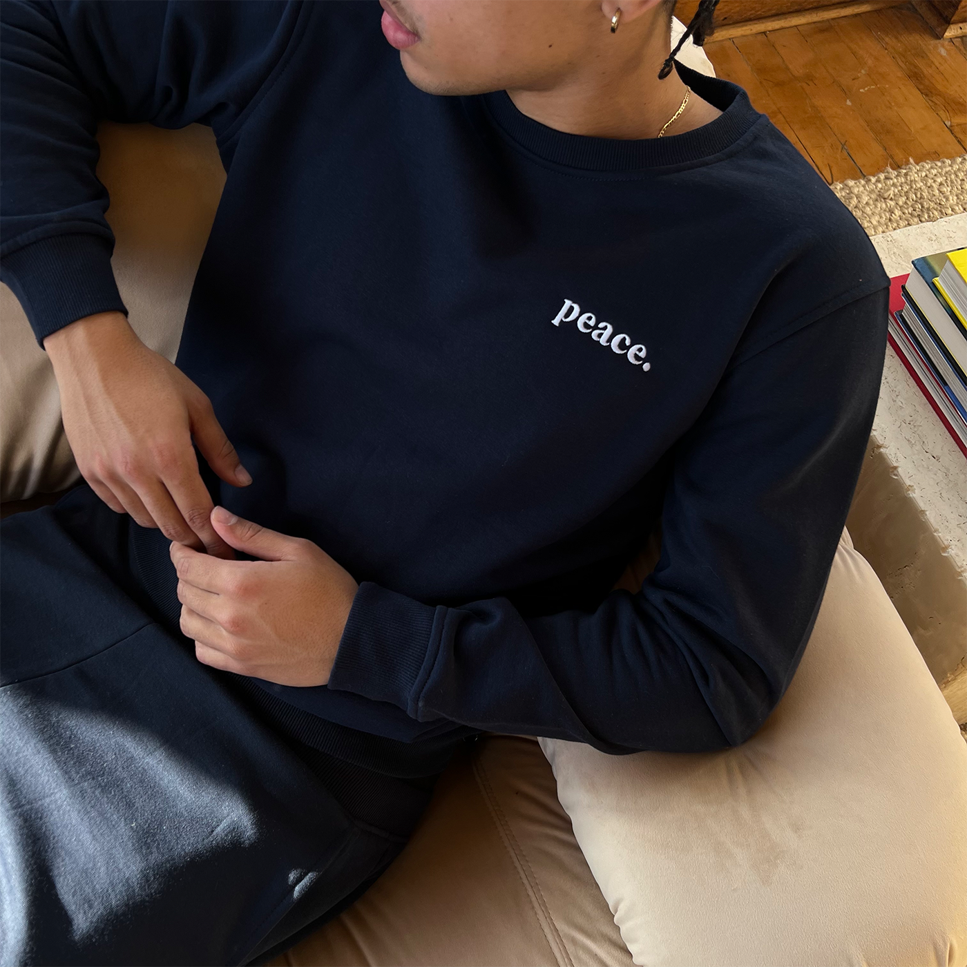 With every garment sold from the Peace collection, the proceeds will be donated to the UNHCR, in support of protecting refugees who were forced to flee due to violence and areas of needs.